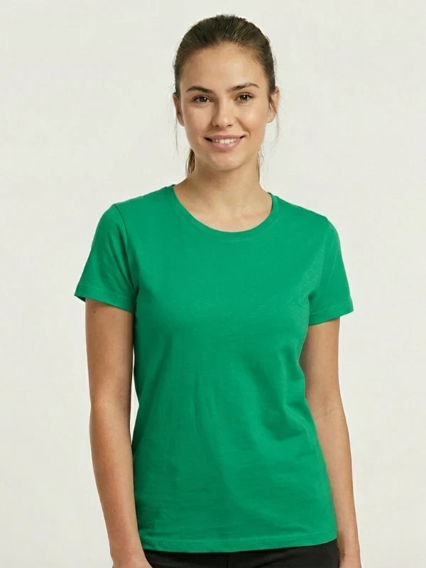 Футболка B&C #E150 Women зеленого кольору — універсальна та комфортна модель для щоденного носіння. Натуральна бавовна приємна до тіла, добре пропускає повітря та забезпечує комфорт у теплу погоду. Легка щільність 145 г/м² робить футболку практичною для активного дня. Приталений жіночий крій підкреслює силует, а зелений колір додає образу свіжості та добре підходить для друку.