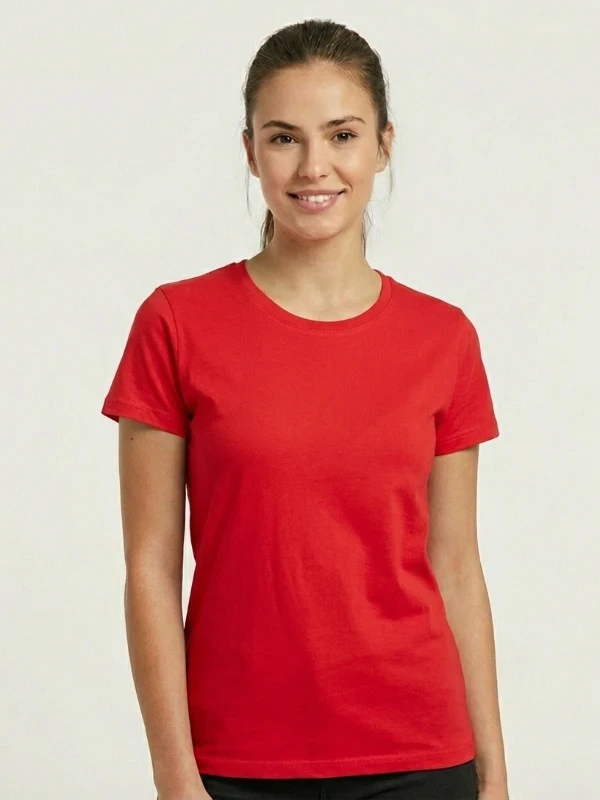 Футболка B&C #E150 Women червоного кольору — яскрава базова модель для щоденного гардероба. Натуральна бавовна забезпечує комфорт і хорошу вентиляцію, а легка щільність 145 г/м² робить футболку зручною у теплу пору року. Приталений жіночий крій красиво підкреслює силует, а насичений червоний колір додає образу виразності та добре підходить для брендування.