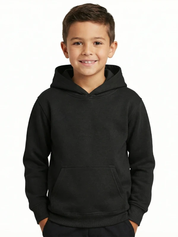 Худі дитяче Fruit of the Loom Kids Premium Hooded Sweat чорного кольору — універсальний варіант для школи, прогулянок і повсякденного використання. Щільний м’який футер 280 г/м² добре тримає форму, зберігає тепло та підходить для нанесення принтів. Продуманий крій без шнурків у капюшоні робить модель безпечною для дітей і зручною для щоденного носіння.