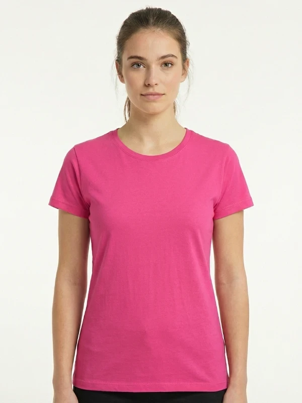 Яскраво-рожева футболка Fruit of the Loom Valueweight Ladies — акцентна модель для літнього гардероба. Натуральна бавовна приємна до тіла, добре пропускає повітря та забезпечує комфорт у спекотну погоду. Тканина пройшла попередню усадку, тому футболка зберігає форму після прання. Жіночий крій робить модель зручною як для щоденного носіння, так і для брендування.