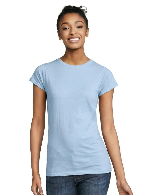 Жіноча футболка Gildan Softstyle блакитного кольору — легка та комфортна модель для щоденного носіння в теплу пору року. Натуральна бавовна приємна до тіла, добре пропускає повітря та забезпечує комфорт протягом усього дня. Акуратний приталений крій гарно сидить по фігурі, а блакитний колір додає свіжості образу та підходить для друку.