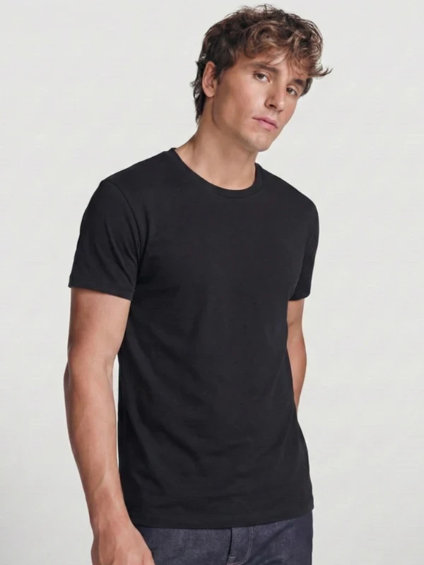 Чорна чоловіча футболка Roly Beagle виготовлена з м’якої 100% бавовни, що забезпечує комфорт у спекотну погоду. Натуральна тканина приємна до тіла та добре вентилюється. Класичний крій робить модель універсальною для повсякденних образів і роботи.