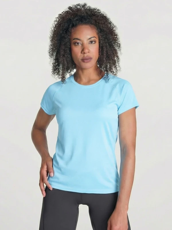 Жіноча футболка Roly Bahrein блакитного кольору — легка та функціональна модель для спорту й активного способу життя. Технічна тканина Control-Dry ефективно відводить вологу, забезпечуючи комфорт навіть під час інтенсивних навантажень. Структура waffle interlock сприяє вентиляції, а UV-захист робить футболку зручною для тренувань на відкритому повітрі.