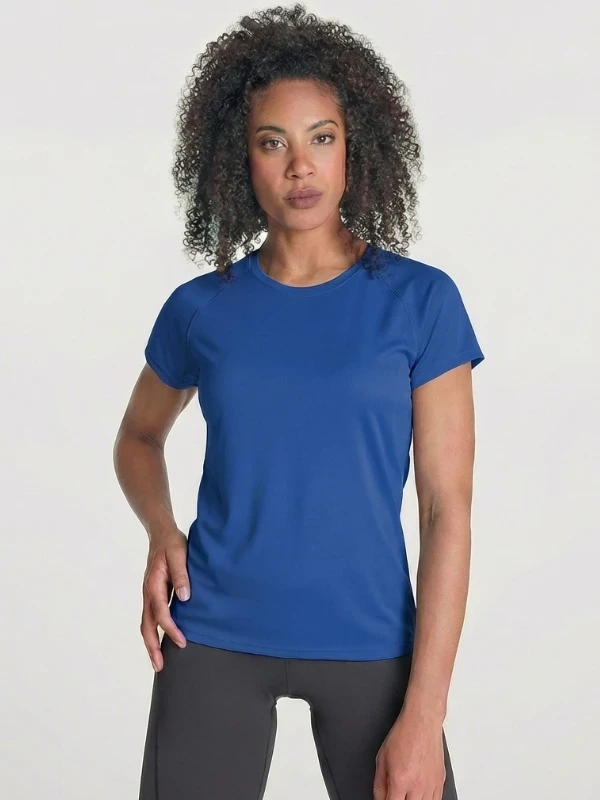 Жіноча футболка Roly Bahrein синього кольору — універсальний варіант для тренувань, активного відпочинку та повсякденного використання. Легка технічна тканина Control-Dry швидко відводить вологу й підтримує комфорт протягом дня. Структура waffle interlock забезпечує вентиляцію, а UV-захист робить модель практичною для занять на відкритому повітрі.